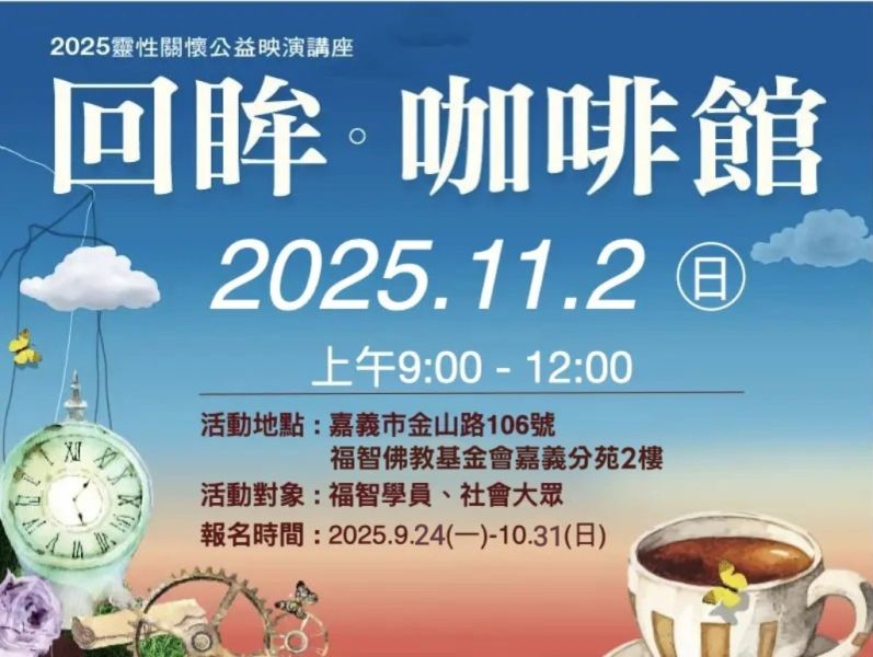 2025「回眸。咖啡館」嘉義場,11/2福智嘉義分苑登場!透過紀錄片《回眸》放映與交流,探索靈性關懷如何帶來力量與內在平安!9/24開放報名!